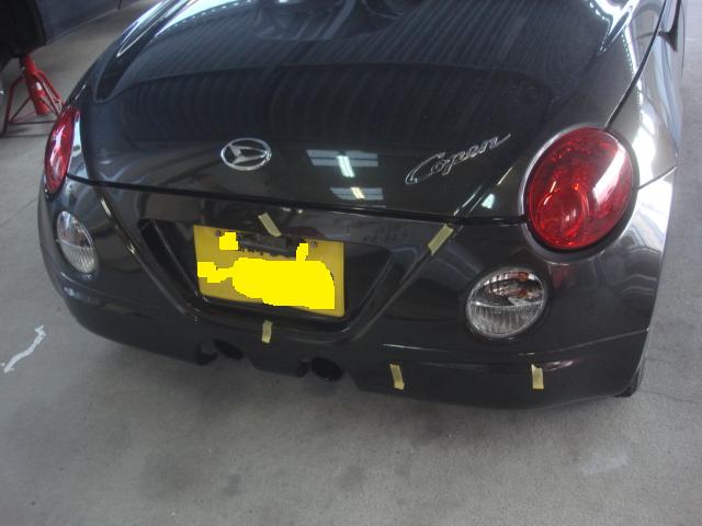 コペンリヤ事故修理です。どこかで全塗装したお車のようです。(どこかはわかりますが…)ディーラーさんお手上げで当社に入庫。おいおいお手上げするなよ。 当社もお手上げしたいのですがどうしてもということでなくなく入庫。なぜ全塗装した板金屋さんにお客さん入庫しないんでしょうか?。