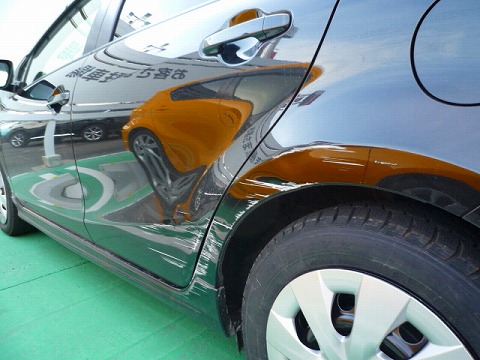 アクア左リヤドア・クォーターパネル・ロッカーモール修理です。