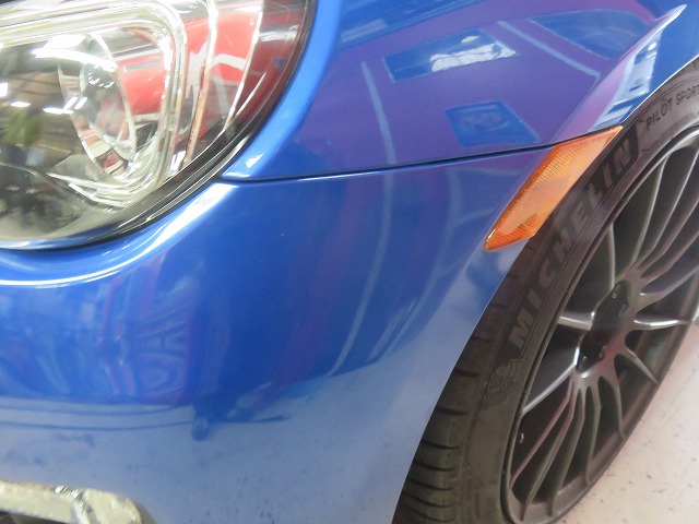 BRZ フロントバンパーブラケットはずれ修理のご依頼になります。以前当社でフロントバンパー下がり修理をされた方でまた症状が出てしまったようです。今現在は追加対策を致しましたので、そのようなことはございません。以前フロントバンパー下がりを修理された方で、追加対策は有料になりますが、その他以前の施工修理と重複する修理箇所は無料にて修理致します。(損傷による場合は対象外)