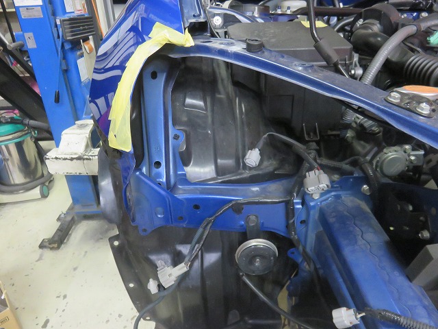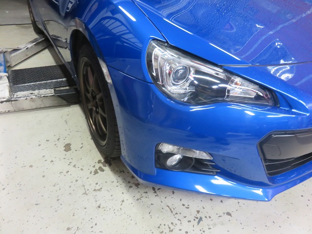 BRZ フロントバンパー下がり爪部外れ修理のご依頼になります。2種の作業がございますご選択くださいませ。今回はコーナーブラケット取付部無加工の方をご選択頂きました。