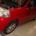 スーパーガラスコーティング施工車でしたのでスーパーガラスコーティングを施工いたします。1時間ぐらい乾燥させた後フロントバンパーを組みつけて、車体に取り付けます。