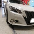 レクサスIS(前期)にレクサスIS-F用(前期用)ヘッドランプ(エコパーツ)を取付後ヘッドランプ磨きコーティングそして、各部フロントバンパー傷ありましたのでフロントバンパー1本塗装・フロントバンパーロアガーニッシュ塗装のご依頼です。