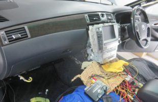 2018.02.12 カスタム, ナビ取り付け等, 内装塗装, 塗装 180系マジェスタ インパネ修理 フォグカバー塗装 地デジ ドアミラー 180系マジェスタ インパネ亀裂修理、フォグカバー塗装、トラ