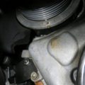 ジャッキでエンジン下がらないように固定して、マウンチングを外しタイミングベルトカバーを外します。